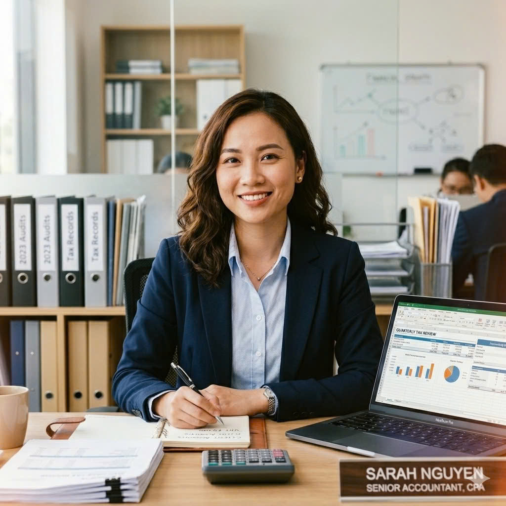“Là một trong những đơn vị hàng đầu trong lĩnh vực kế toán, báo cáo thuế với 9+ năm kinh nghiệm cùng 20+ nhân sự chuyên môn cao. Hỗ trợ khách hàng trên tất cả các phương diện như: báo cáo tài chính, báo cáo thuế theo quý, dịch vụ kế toán trọn gói, dịch vụ thành lập công ty, doanh nghiệp…